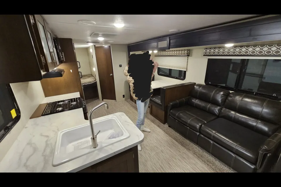 Enjoy your next adventure in our well-equipped travel trailer with a cozy queen bed in a private bedroom, a pull-out sofa, a convertible dinette, and a bonus double bed—perfect for families or groups of up to 6.