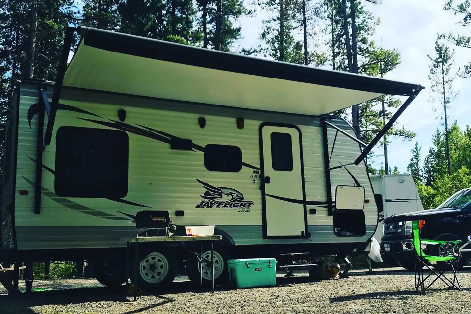 Set up the power awning, turn on the outdoor speakers and crack a beer!