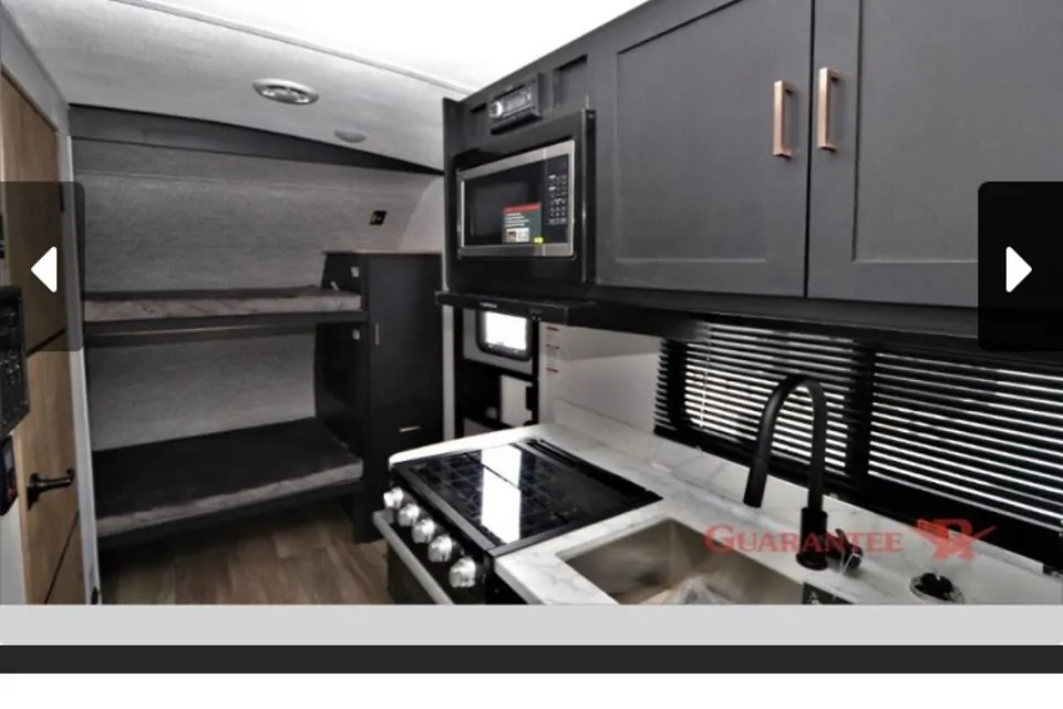 newer top of the line trailer. Sleeps 7 and has a king size bed in the slide. Bunks in the front. Leather interior. Full size fridge. Large kitchen sink. Solar. Inverter. Almost everything you can get with a trailer. Comes with basic pots and pans and cutlery. Weight distribution hitch included. Power jacks all around. Power awning with lights. I can provide extra things like generators or propane fire pits and almost anything that you would need for additional cost. Absolutely a pleasure using this trailer. Has solar with inverter.