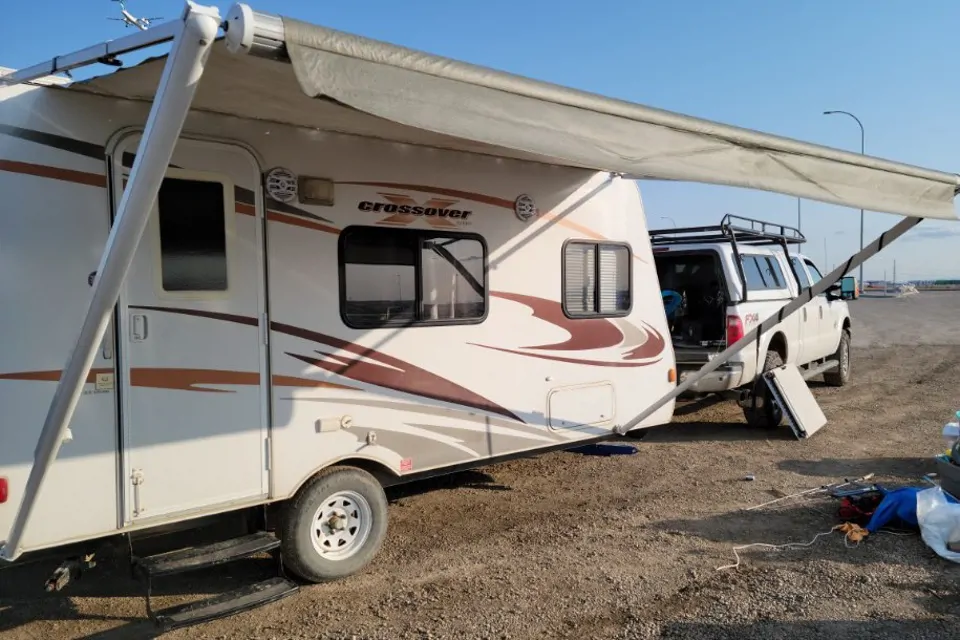 Our trailer is light weight SUV and mini van towable. Comes with everything you will need to head straight to the campsite and begin your adventure! This 20ft trailer is fully equipped with a queen-sized bed, full kitchenette and 3 piece bath. The dinette conveniently converts into a bed. This unit is also equipped with AC/furnace microwave hot water tank and an awning to keep you dry or sheltered from the sun.