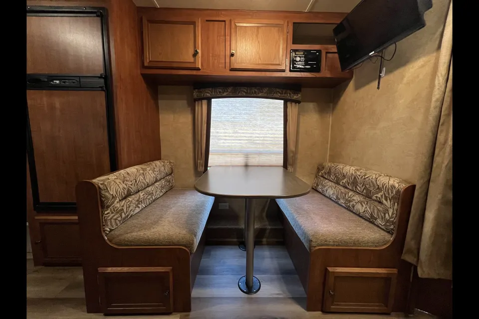 Inside you'll find a fully stocked kitchen, indoor washroom with a shower, and a comfortable sleeping set up for everyone riding along. No smoking, No pets.