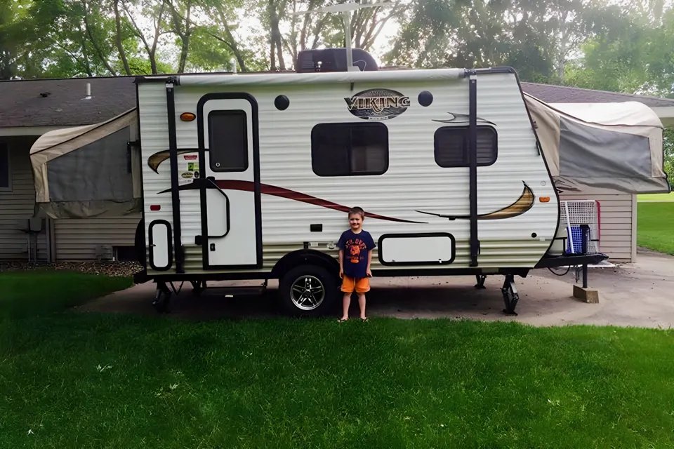 Our 2015 Hybrid Forest River Viking is your home away from home for the spring/summer and fall of 2023 that sleeps 6-7 with 2 in each pop out and 2 on the kitchen table conversion.