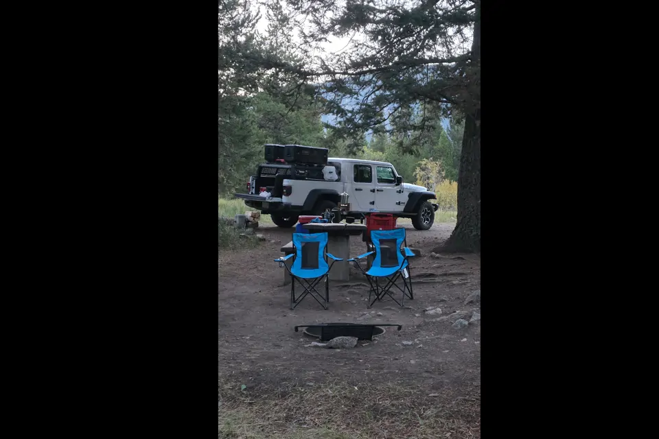 This Newly Built Jeep Gladiator is equipped with back road capabilities that with get you away into Alberta's and British Columbia's back country .
