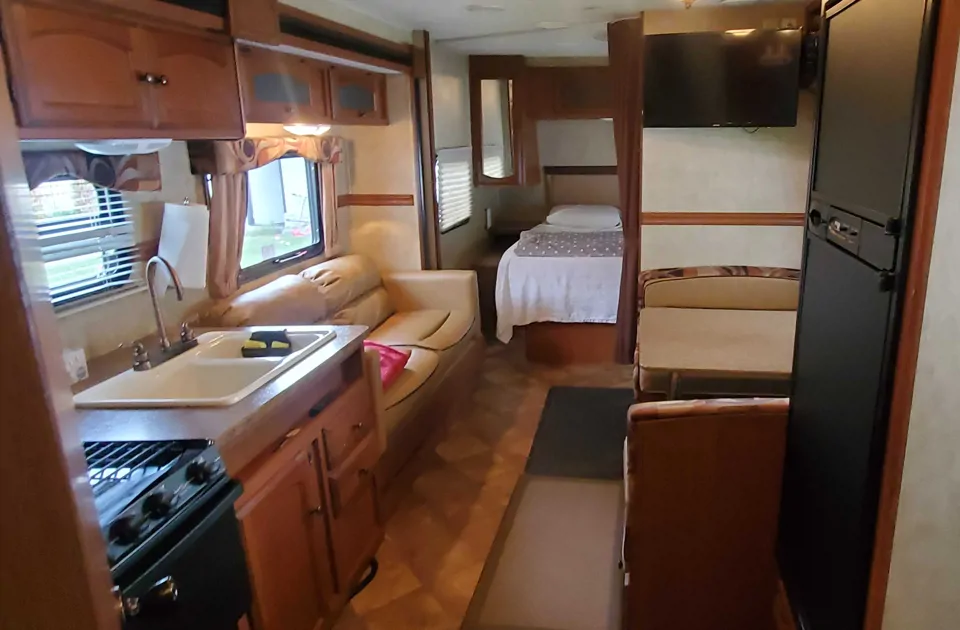 Small Home to Family Camping. Perfect up to 3 kids and two adults. It comes with Solar and one side Slide gives you more room to kitchen and enjoy with Smart TV in sitting room. A bed room with a queen bed and a lots of closet with mirror. A sofa can turn to bed and a dinning table and sit also can be fold to bed. Two doors fridge can store a lot. The 30lbs propane tanks can also last long. The AC and the furnace are new.