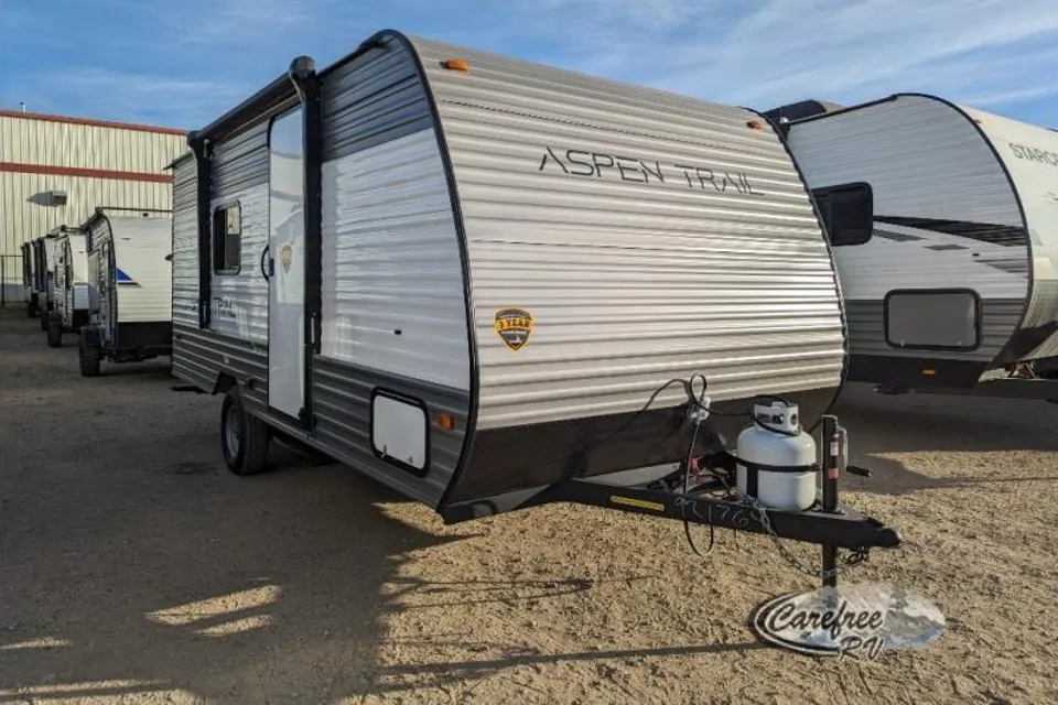 Any Aspen Trail Mini travel trailer by Dutchmen RV will provide you and your family a lightweight and compact unit filled with comfort and style. Each unit features front diamond plate protection from road debris as you travel, and easy lube axles for great performance. You will appreciate the upgraded residential flooring, LED lighting, the Systems Monitor Panel, full extension drawer guides throughout, as well as a two-burner range top and microwave for cooking, and a complete bath for added convenience. Come choose your favorite compact, lightweight Aspen Trail Mini and enjoy your next adventure!