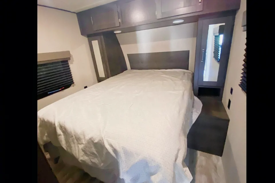 This 2021 trailer is perfect for families, offering plenty of space and privacy for everyone. With two separate bedrooms—a private master at the front and a spacious bunkhouse at the rear—there’s room for everyone to relax in comfort. Both rooms feature ample closet and storage space.