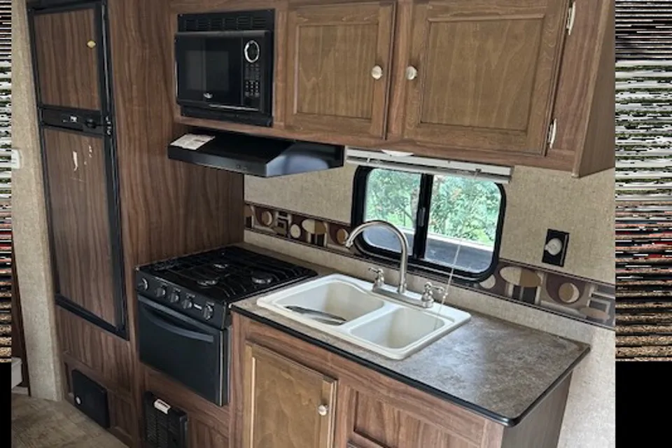 Awesome Trailer sleeps 7 has Led lighting in the awning lots of storage easy to pull comes with all the kitchen equip cups,plates,silverwares pots an pans twin tanks A/C Bring your food and bedding and your good to go !!