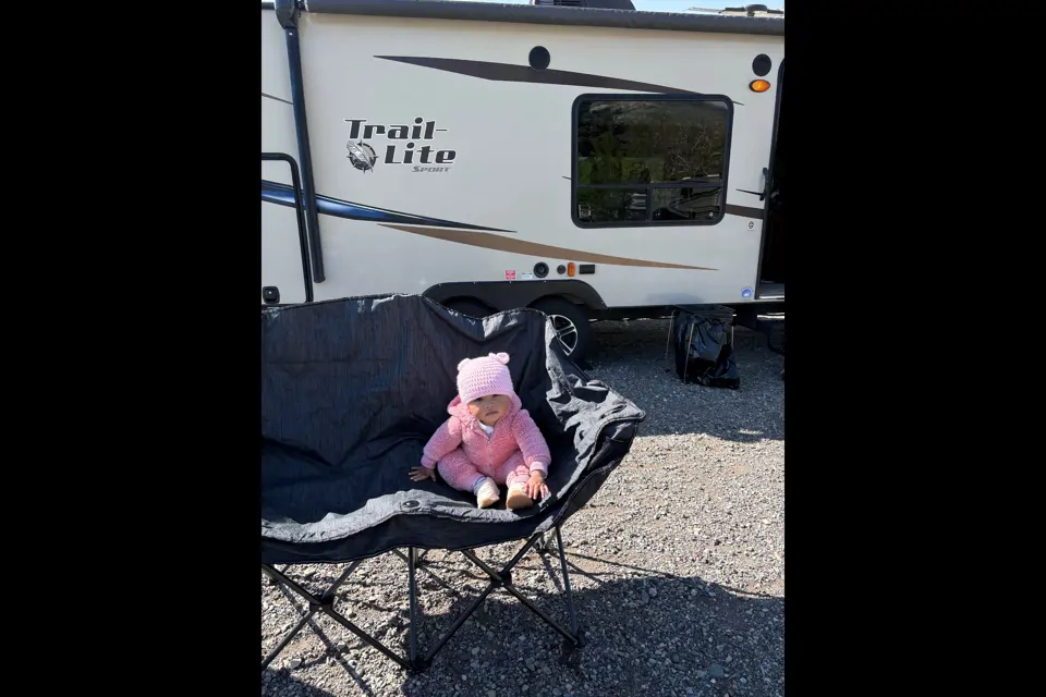 I have 33 ft pull behind travel trailer,with one slide, bunk room with 3 bunk beds in front the master bed with queen size bed, mini kitchen outside,big awning,electric hitch stabilizer ,dinette and sofa turns into bed if needed,and this trailer good for big family and can sleep up to 10 people.
