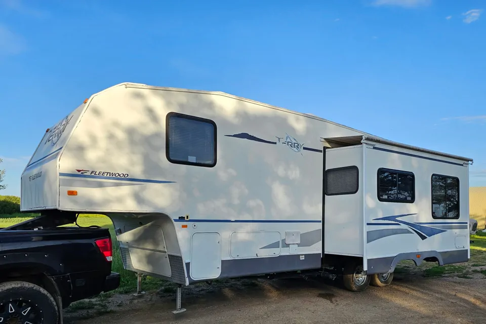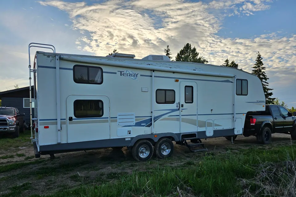 I have a 2005 Fleetwood Terry available for your summer holidays or weekend getaway! It has a bunk room that sleeps 2 with a door for privacy. Sofa bed and a dinette that can be mad into a bed . Front bathroom with shower . And front master bedroom with a queen bed. Fridge , stove , microwave, and air conditioner. There can be a portable BBQ , gazebo , and 3500 watt generator for an additional cost if needed .
