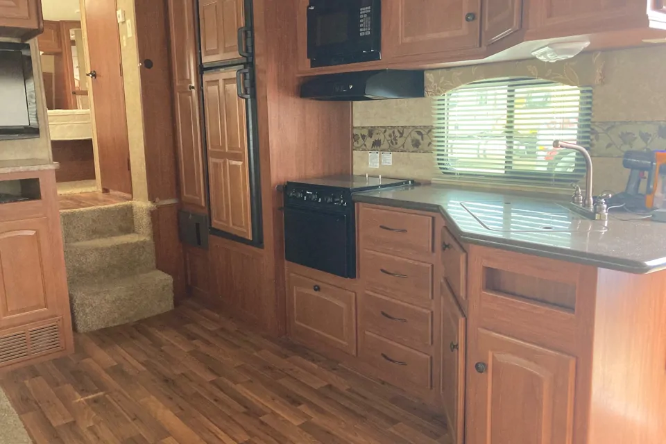 Beautiful comfortable unit. The slide out provides a spacious living area. The large bedroom is equipped with a full shower and bathroom. 32” television with a dvd/cd/radio provides plenty of entertainment on the rainy days. Lots of storage for your personal belongings.