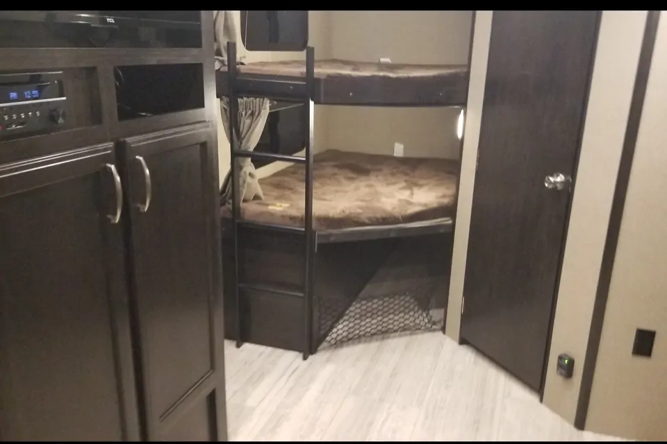 Spacious and family-friendly, this well-maintained travel trailer sleeps 6-8 and is perfect for your next getaway. Features a private queen bedroom, double bunk beds, and a convertible sofa and dinette. Fully equipped kitchen with stove, oven, microwave, and fridge, plus a bathroom with walk-in shower. Enjoy the outdoor kitchen, power awning with LED lights, and ample storage. Comfortable, clean, and ready to camp!