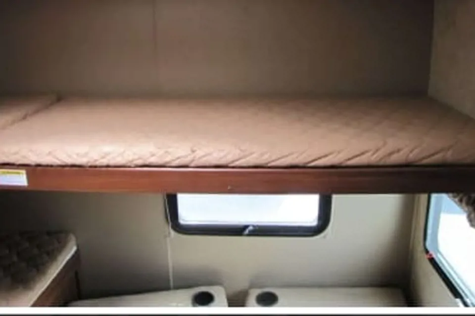 My trailer has a room at the front with sliding door and a kids room at the back that sleeps 5 it has three bunks and two cub couches that fold down into a beds with a slide out for a full closet and a tv and dvd for the kids it also future a outside kitchen the table fold down for additional bed and the couch has a pull out bed the bathroom has access from the outside with it own door. We include a table top BBQ, 4 camping chairs, 1 out door rv mats.