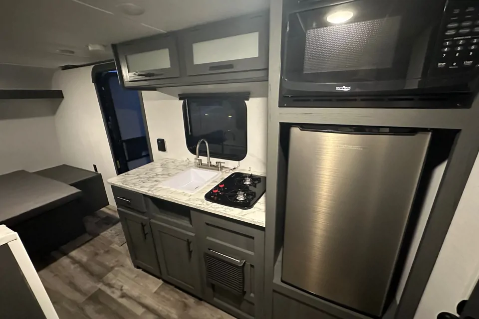 Equipped with a 5-gallon propane tank that lasts a good while and a water tank that holds plenty of fresh water, you'll be well-prepared for extended stays. The Dreamscape also features both air conditioning and heating, ensuring comfort during northern Arizona's hot summers and chilly winters.