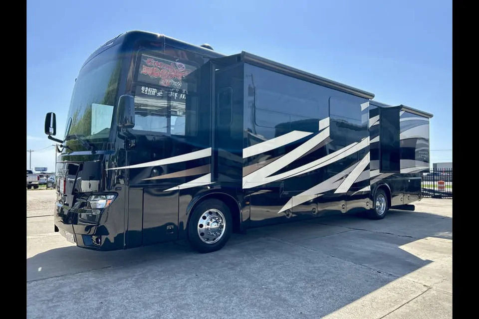 This BEAUTIFUL 2020 Newmar Kountry Star is LIKE-NEW with TOP-TIER construction quality and comfortable living space! Has Pusher Freightliner XC-Series Chassis, ensuring a smooth ride and reliable performance! Sleeps up to 8 comfortably Includes washer and dryer! Fully equipped kitchen with abundant cabinet space. Features a 3-burner stove top, convection oven, and refrigerator/freezer Living area features leather sofa that converts to bed for extra sleeping space, leather theatre seating Master bedroom suite with sliding pocket door for privacy, king-sized bed, large wardrobe with sliding door Additional features include a central vacuum system, and a spacious bathroom with a porcelain toilet and a shower...and so much more!