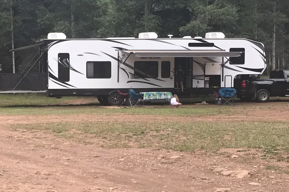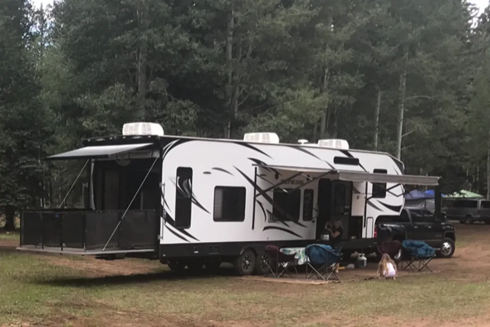 40 foot trailer, sleeps 8 people , has all amenities including solar , generator . and a 24ft garage for your toys .