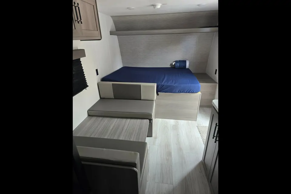 brand new trailer ready for your family to enjoy the outdoors. With the Dryweight being under 5000 pounds, this trailer can easily be pulled by a 1/2 ton truck or SUV.This trailer has an open floor plan, double bunks, queen master bed, dining table lalso turn into bed. Also has an mini fridge and stove. electric awning with LED strips porch lighting .Trailer comes with all connections necessary for full campground hookups.