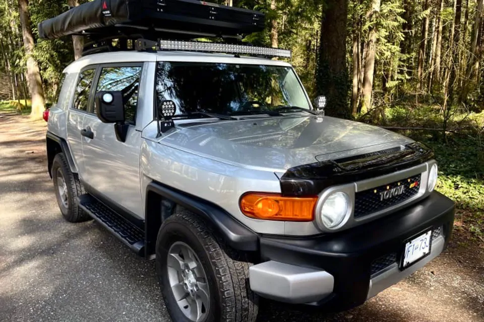 New to our rental fleet, a 2007 Toyota FJ Cruiser fully equipped for your outdoor get away. Vehicle seats 5, roof top tent sleeps 2 adults + 1 small child. For additional guests, an Add-On option is available for a 5 person tent. Recently serviced and with brand new equipment, you’re not limited to a crowded campground. Instead, get off the beaten track and follow a random gravel road until you find the perfect secluded spot to set up camp.