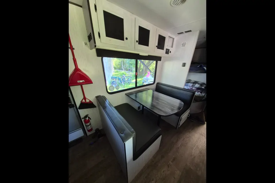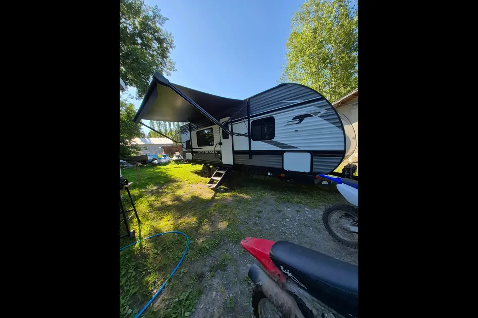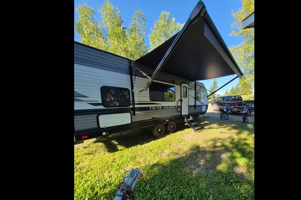 This beautiful 29ft Trail Runner, is perfect for any traveling family. This spacious RV sleeps 7 people comfortably, with a pillow top queen size bed, double bunk beds for the kids, a kitchen table that can transform into a bed as well a fold out couch. This RV has it all, it comes equipped with an electric awning, fridge with freezer storage, and a double sink. The bathroom let's you shower or take a bath to rest after a day of adventure, the portable propane fire pit keeps you warm on those chilly nights. This