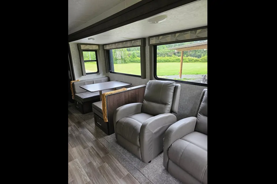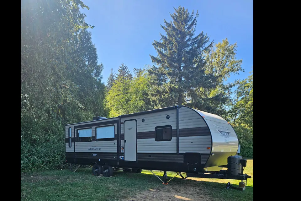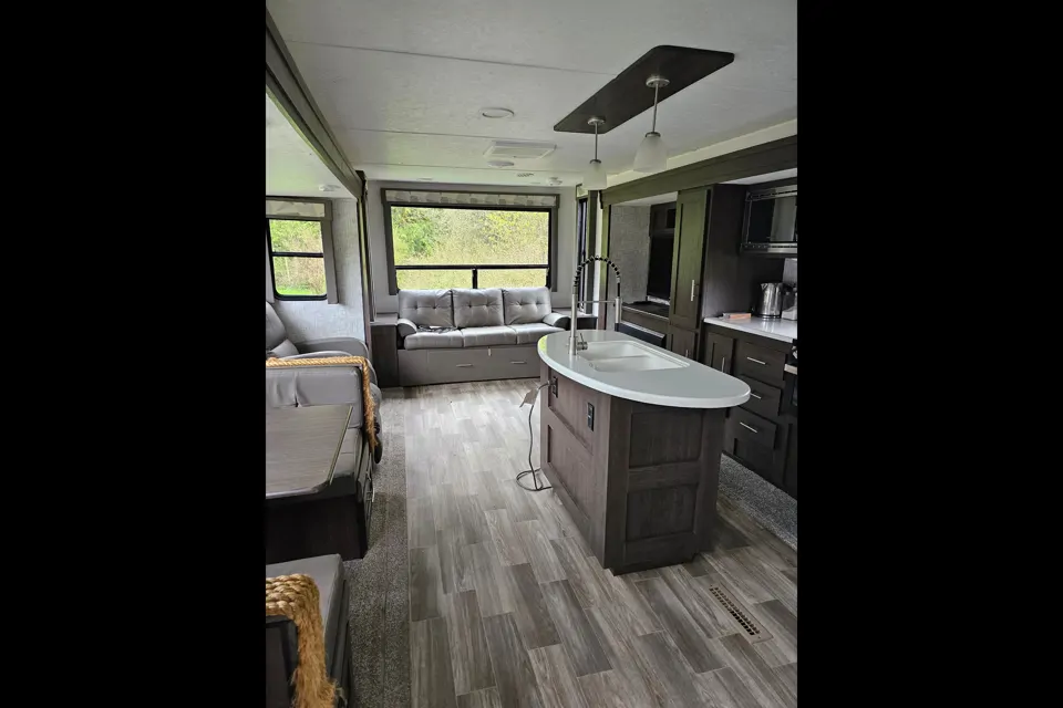 Great trailer for entertaining. Large kitchen area with 2 slides and an Island. Sleeps 6. Pets and kids are welcome!