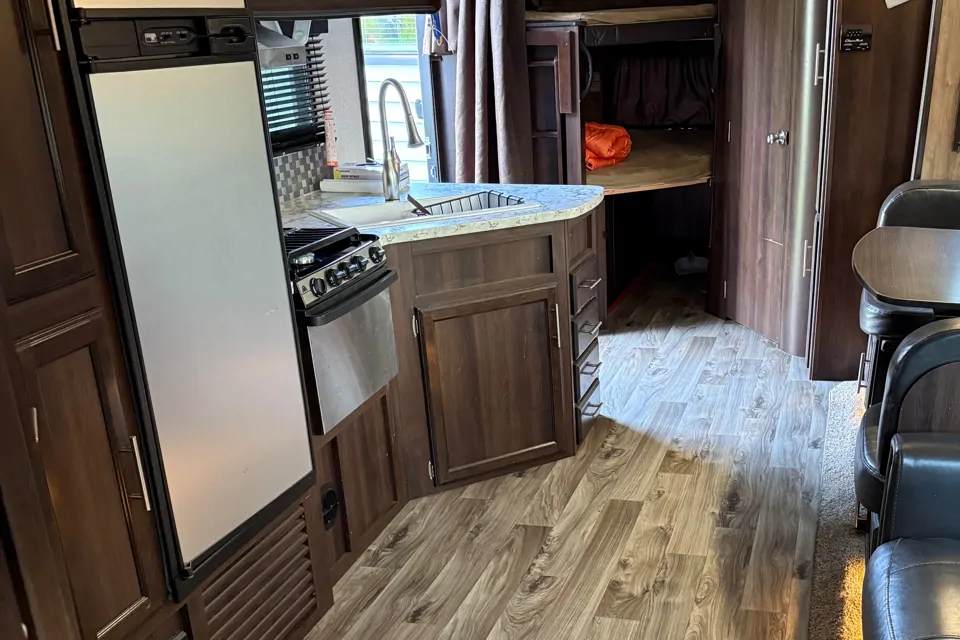 Family friendly clean 2018 Jayco travel trailer for rent, double bunks can sleep 2 people on each bunk, queen bed, pull out couch. Full bathroom, large slide and awning to protect you from the elements. We used this trailer when we had a seasonal spot up at Cultus Lake but have since given our spot up.