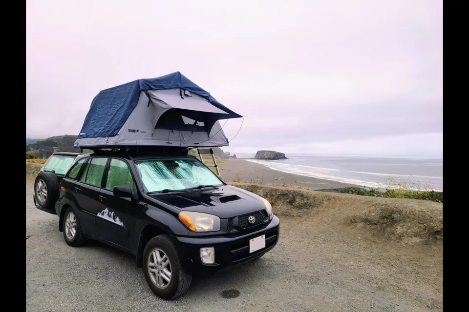 Experience the real West Coast sites with this tough 2007 Toyota RAV4 Chilli edition which is equipped with a top of the line rooftop tent and a fully custom- made kitchen. Go cheaper on gas with a compact SUV, without sacrificing the comfort of having a kitchen and a bedroom. This car is pretty much going to stay on Vancouver Island and I always like to know the destinations of the renters.