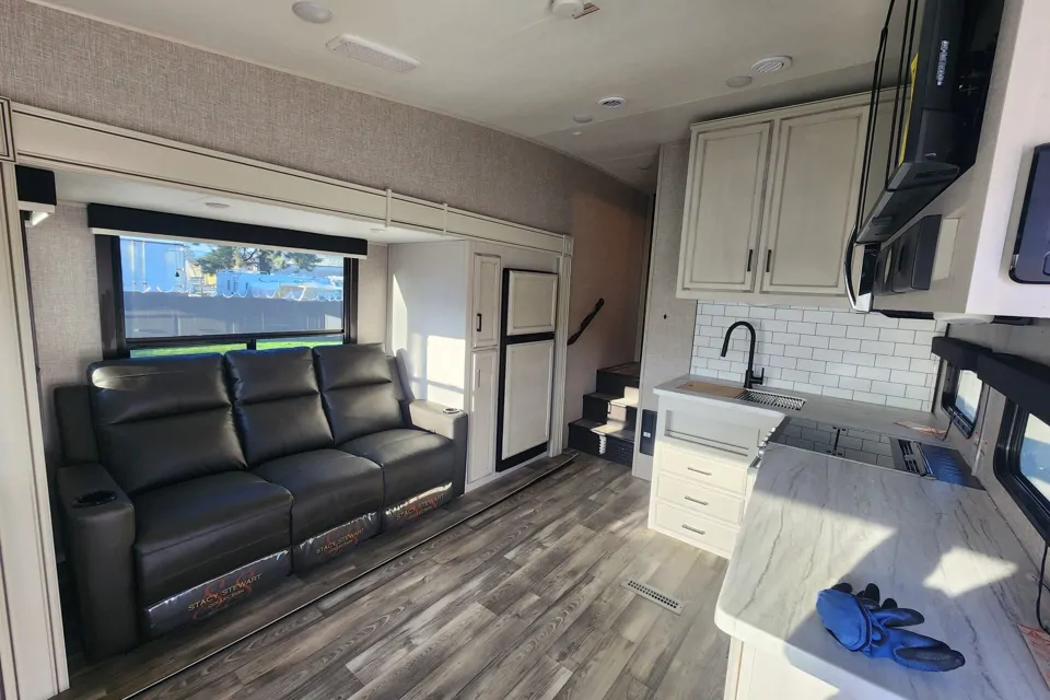 Stay warm with the furnace on chilly nights and cool off with the A/C during hot summer days. Outside, enjoy relaxing under the powered awning – perfect for morning coffees or evening hangouts.