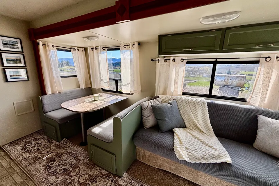 Set very close to the beach we have included almost everything you need to have an amazing time. Just bring your food and clothes and enjoy this pristine off grid getaway. The resort is located 35 minutes from West Kelowna. This RV is equipped with solar power and an inverter so that you can still enjoy the creature comforts of home while in the middle of this wilderness oasis. The rv itself is older but has undergone a complete renovation in the spring of 2026. We have free Starlink wifi also for those that still need to stay connected. Enjoy the water with added amenities such as boat and paddle board rentals. We are a dog friendly resort so bring your furry family members. This is a perfect set up for anyone who loves camping but hates all the preparation or doesn’t have access to a truck and rv of their own.