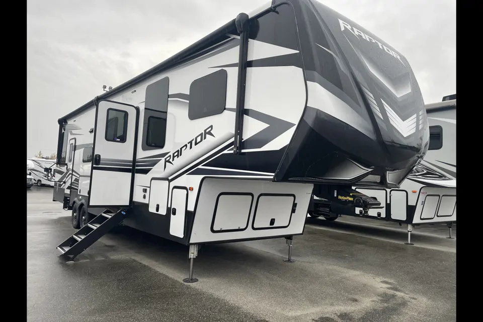 This 2021 Keystone Raptor helps make you feel more at home while camping! Equipped with almost everything you need, which helps take the load off of packing.