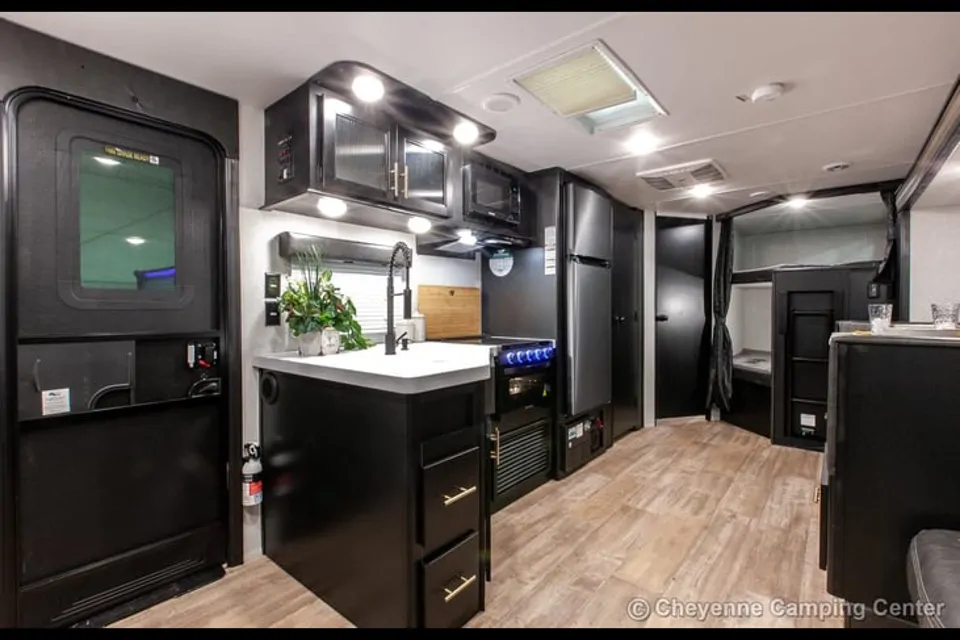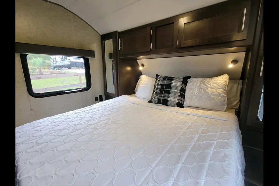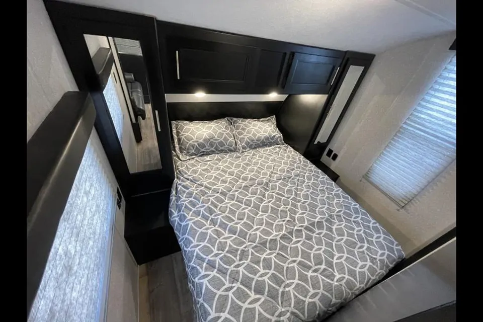 Mint condition and ready for your next big adventure or making memories with your family. Perfect size and layout with a modern look everyone loves. This unit has a rear bathroom with an interior and exterior washroom access so you don’t have to track all that beach sand through the whole trailer to use the washroom.
