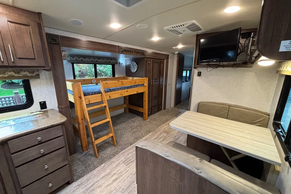 Built tough for Canada's variable weather, this Arctic Fox is a true four-season coach designed to keep you cozy in winter and cool in summer. It features high-R-value insulation (including R-18 ceiling and reflective foil layers), heated and enclosed holding tanks to prevent freezing, thermal pane windows for superior thermal performance, and a powerful furnace to handle chilly nights. Whether you're planning snowy getaways to the mountains, winter boondocking, or just needing a warm, reliable temporary stay, this trailer excels in cold conditions without compromise.