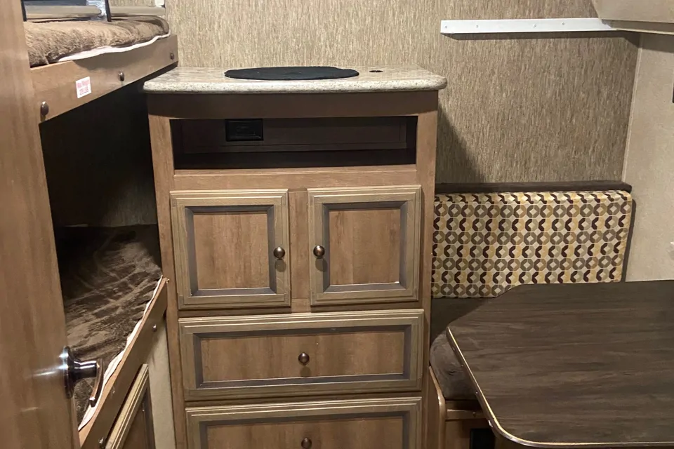 - Danielle P.Aug 2022Delivered by hostScott and Lisa were very quick to respond to my messages. They were friendly and helpful with all of my questions. The bed wAs very comfortable which was a relief because some trailer beds aren’t great. we were grateful the trailer had AC and everything else we could possibly need. The trailer is huge and will fit a family comfortably. The only downside was one of the bottom bunks didn’t work which made us have to rearrange how we were going to sleep. (This is specific to us because we have a baby and a toddler and they’re too small to be on the top bunks- it would be totally fine for a family with older kids) We would rent this trailer again!