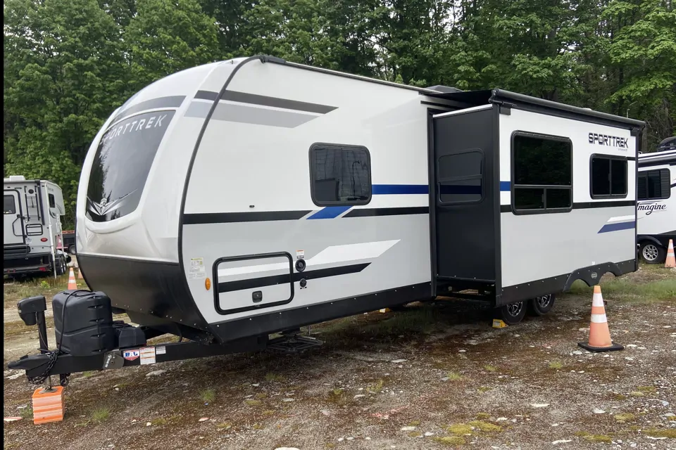 Experience the great outdoors in comfort and style with our 2021 Venture SportTrek travel trailer. Clean and well maintained and designed for couples or small families, this compact yet spacious trailer offers a cozy queen-size bed up front, convertible dinette, and ample storage for your gear. Lightweight and easy to tow—perfect behind most mid-size SUVs and trucks—it features a sleek fiberglass exterior and aerodynamic profile, making highway travel a breeze.