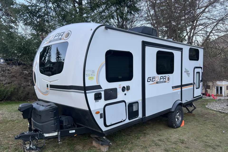Ken’s Geo Pro Travel Trailer offers a compact, well-designed space that maximizes comfort and functionality. Inside, you’ll find a modern layout with a cozy sleeping area, an efficient kitchenette, dining space, and a clean, well-equipped bathroom. It is ideal for both short stays and extended trips. Large windows provide natural light, creating an open, inviting feel despite its streamlined footprint. This trailer is perfect for couples, solo travelers, or families looking for a convenient, mobile basecamp.