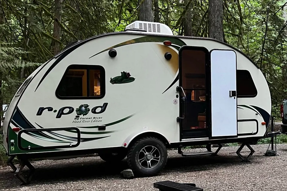 Pros: huge water tank, great battery capacity, good amenities, loved the slide out kitchen, fridge, lots of sleep space, provided hitch setup, provided electric drill for jacks provided chairs, clean sani tools