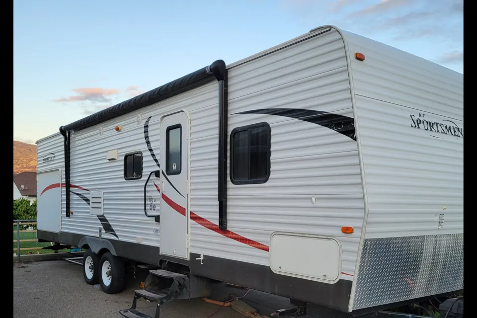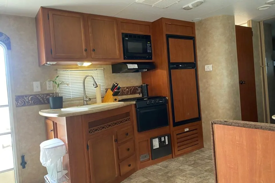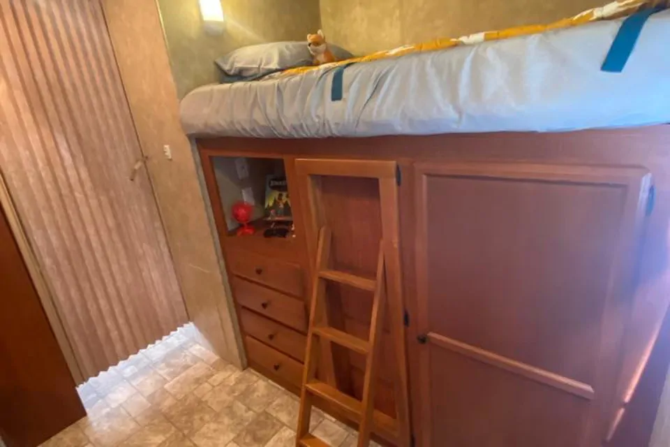 Family friendly spacious trailer great for a weekend or an extended stay. Bunks beds in the back have a private y curtain so the kids can sleep while the adults enjoy! Outside speakers help with outdoor enjoyment. 30amp power!AC works great for those hot summer nights.
