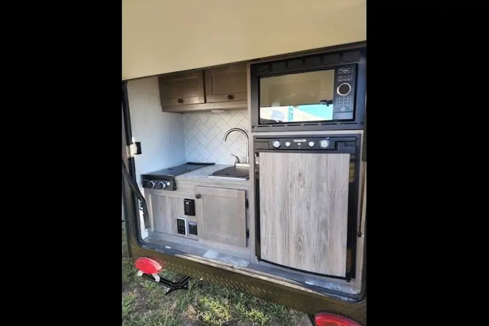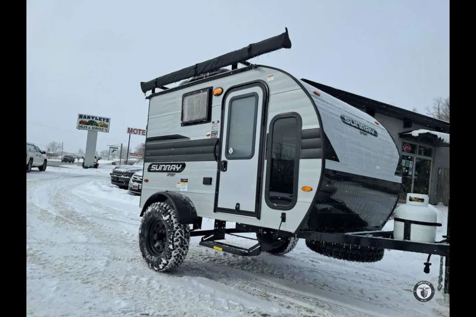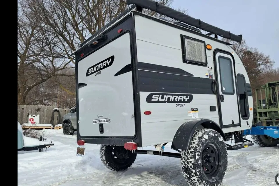 2024 Sunray 109 sport! Can be pulled with any car, SUV, or truck. This trailer is 12 feet and weighs 1200lbs. Comes equipped with solar power and has furnace, AC, full kitchen, pullout couch, outdoor shower, and smart tv. Rent my starlink if you need internet on the go as well. Long term or short term stays welcome. Great for guest, or just to get a nice getaway off grid.