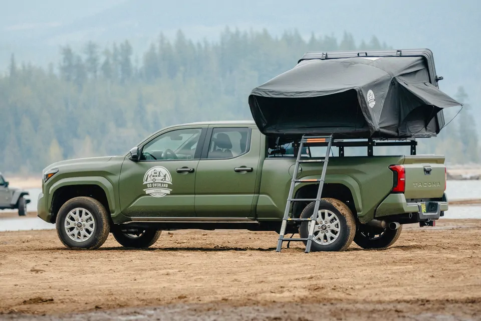 It's a 2025, so everything is current. 4WD, solid ground clearance, and enough bed and cab space to pack properly for a few days out. The rooftop tent sits well on it and the whole setup feels solid on the road.