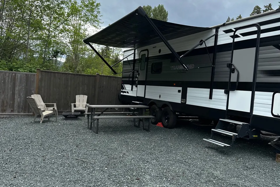 This beauty is set up and ready to enjoy with friends, family or solo! Located on our property in Hilliers where you have your own outside sitting area, fire pit and picnic table.