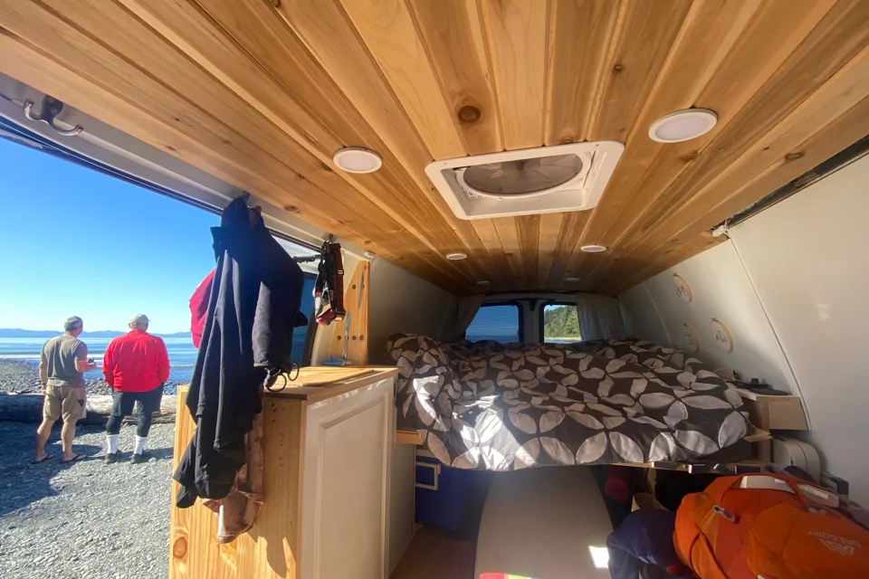 Wanda was custom build to be the perfect mobile ski cabin. Incredibly well insulated, with an externally vented propane heater, this van can dry gear and keep you cozy warm even when the outside temperatures are -20 C. The insulation does it's job in the summertime as well, keeping the van cool and comfortable day and night.