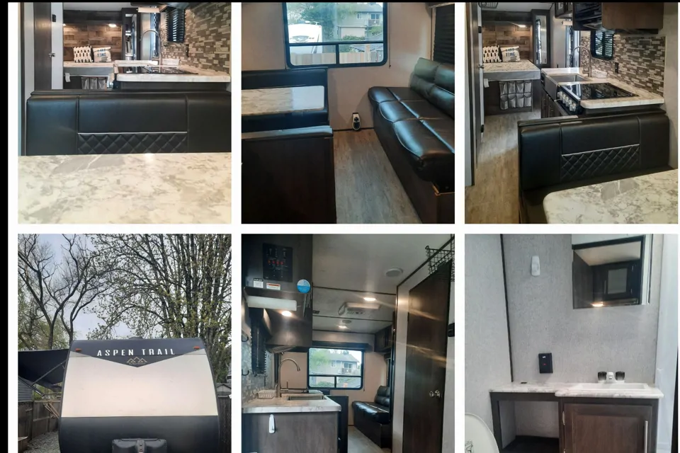 22 ft 4500 lb 2020 newer trailer, Sleeps up to 4, perfect for couples or a small family. Bathroom has tub and shower, kitchen with dinette/bed, small solar panel, all dishes/cutlery/pots & pans, glassware, coffee pot, microwave, fridge and freezer. Air conditioning,electric trailer hitch for easy hookup propane tanks are full at the beginning of each trip.
