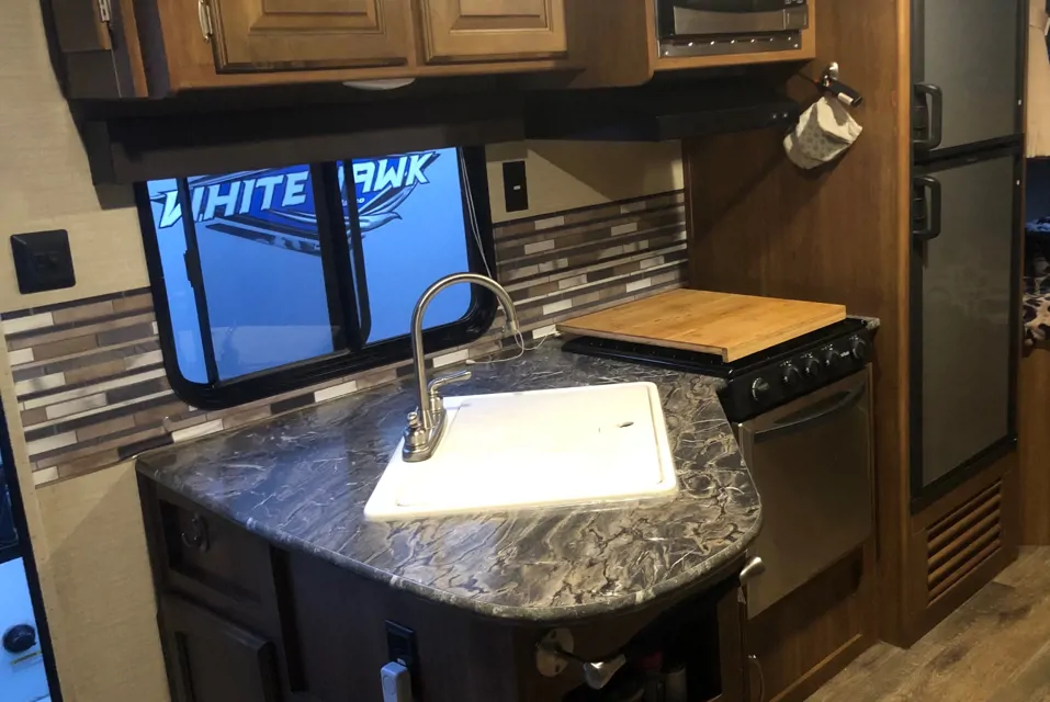 - Corinne G.Aug 2023Robbyn was terrific to deal with. We did find the location for pick-up and delivery very hard to find and access. I recommend that if you rent it you have the owner deliver to the site you are staying at. There were only enough dishes for 5 people (all plastic plates and cups) as well as 2 stainless thermal cups so I suggest you supplement with your own if required. The outdoor kitchen cooktop was all we used besides our bbq and was very convenient. The queen mattress was awesome!