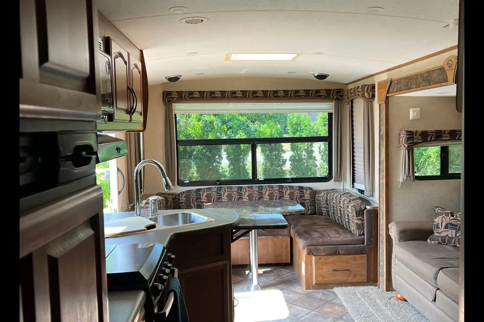 A note from the host: Trailer located in West Kelowna, delivery available to local campgrounds. Site must be large enough to accommodate this longer trailer with tip out. If wanting to self tow, proof of towing experience and ability to back up required.