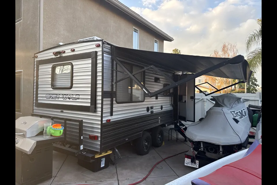 Hello from Brooke & Daniel. We are owners of a 19ft -24ft Grey Wolf- 2019 Forest River fifth-wheel. Our RV has 1 slide in the back that extends outwards making the RV longer. We are willing to deliver within 85 miles. Our RV is clean, gently used, home on wheels perfect for family vacations or long stays.