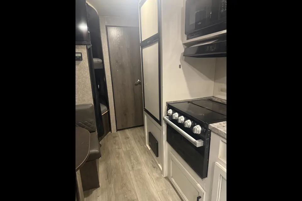 Enjoy our luxurious home away from home! We have all the amenities that you will need for your stay. Perfect travel trailer waiting for memories to be made…This 2021 travel trailer is perfect for a simple weekend or a long getaway. It sleeps 6 people comfortably with one queen size bed and bunk beds that are twin size. The trailer also has a couch that folds into a bed. It features a fully equipped kitchen with full size fridge, oven/stove and microwave and all basic cookware for your use. The bathroom has a full size shower and a separated sink area. We offer add one as well like camping chairs, folding tables, extra canopy, extra gas for generator, extra propane tank. WE DO NOT PROVIDE LINENS. This trailer is perfect for a fun family trip or a weekend getaway!