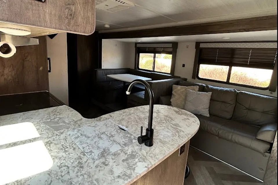Pack up the kids and hit the road with our 2021 Forest River Wildwood 273QBXL. It's perfect getaway on wheels! This cozy, spacious travel trailer comfortably sleeps up to 10, featuring a private queen bedroom, roomy bunkhouse for the kiddos, convertible dinette, and a sofa bed. Equipped with a full kitchen, modern bathroom, outdoor kitchen, power awning, and plenty of storage, your family camping trip just got easier (and way more fun!). Simple to tow, easy to set up, and loaded with comforts to keep the whole family happy. Your life changing adventure is waiting!