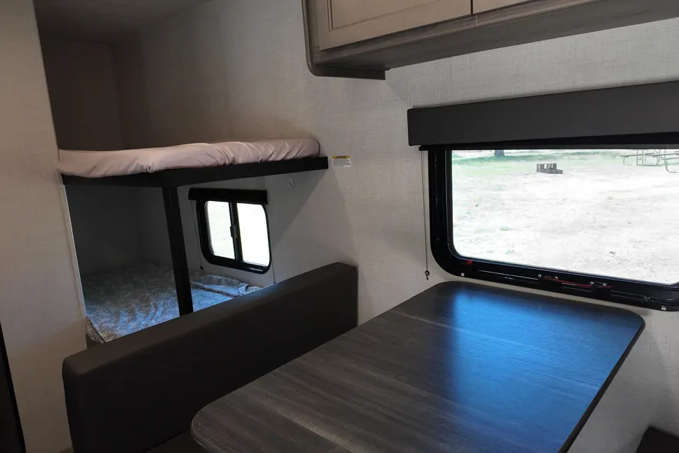 - Sleeping Arrangements: Comfortably sleeps up to 5 people with a queen-sized bed, two cozy bunks, and a convertible dinette.