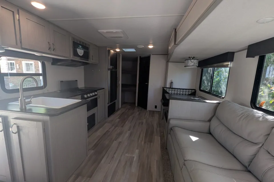 Clean and bright 2021 Tracer Travel Trailer in new condition. Spacious with full kitchen, dinette, sofa, bunk beds, and separate bedroom. Large size shower. Lots of storage both in and out of the trailer.