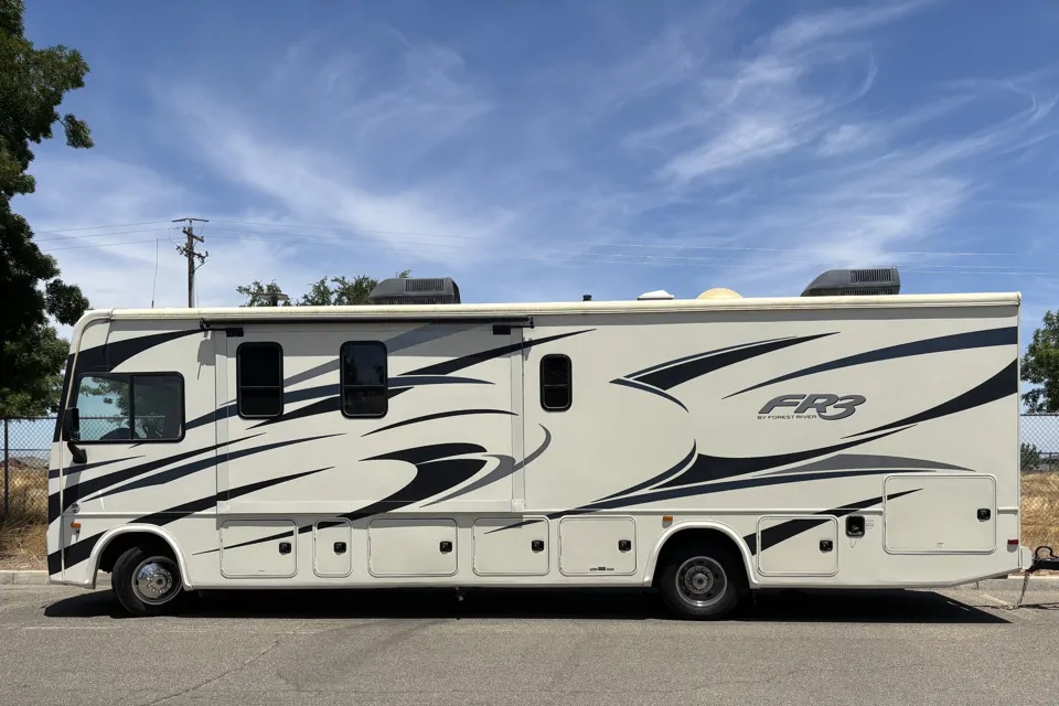 Large RV great for families or larger parties with 2 slideouts to make the space extra roomy. The RV will sleep up to10 people; Queen bed in the bedroom space, 2 bunk beds (or couch space), moveable space above the coach seats, main couch folds out, and the dinette folds down. There are a total of 4 tv's; 1 in the bedroom, 1 by the bunks, 1 over the dinette, and one outside. The RV has camping chairs for 5 people but plenty of storage for you to bring your own as well. Basic dishes and cookware are included. This is a non smoking vehicle. We prefer the RV to stay in California. Thank you