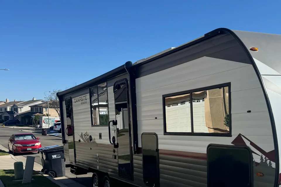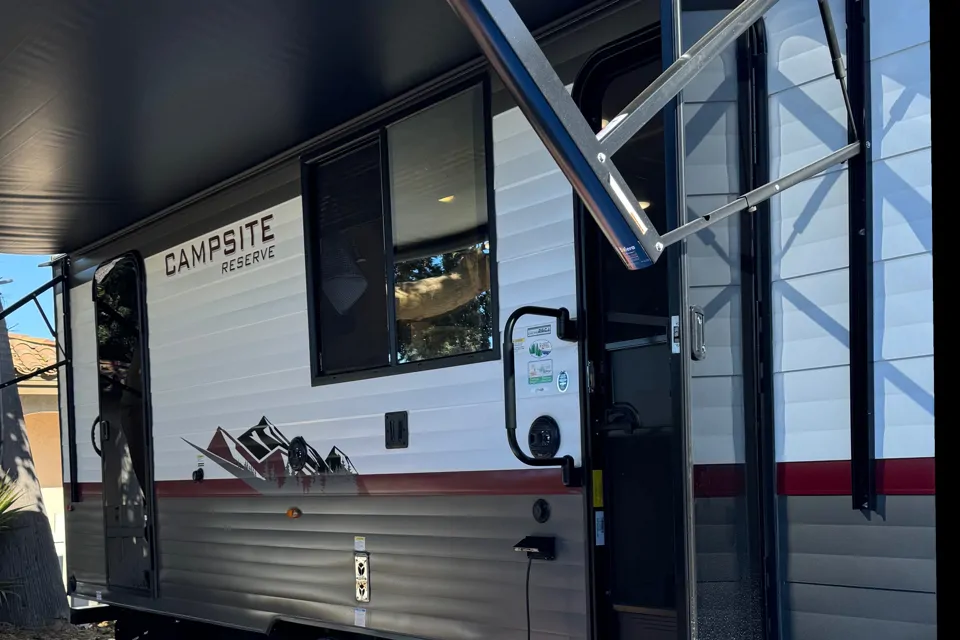 Camper has an outdoor griddle/bbq and fridge for you to enjoy all the camping fun directly at your doorstep.