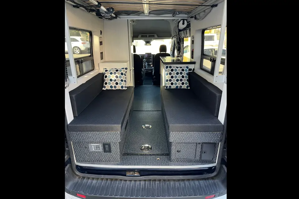 2 + 2. Drives and sleeps 2 adults and 2 people under 64”.